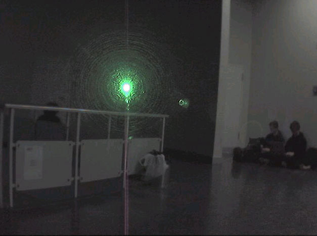In the following scene we aimed the laser to the camera, from a point about 30-45° right outside the picture.